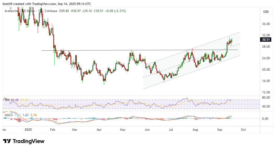 The post Avalanche price: AVAX holds $30 level as bulls target channel breakout appeared first on CoinJournal.