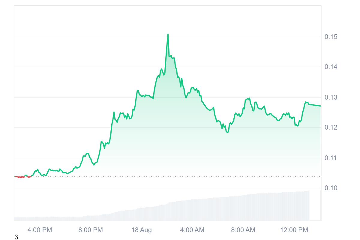 Although BIO remains double-digits up with over 21% upside in the past 24 hours, it has dropped from the $0.15 high. This shows the overall market weakness as sellers drive it to around $0.12.