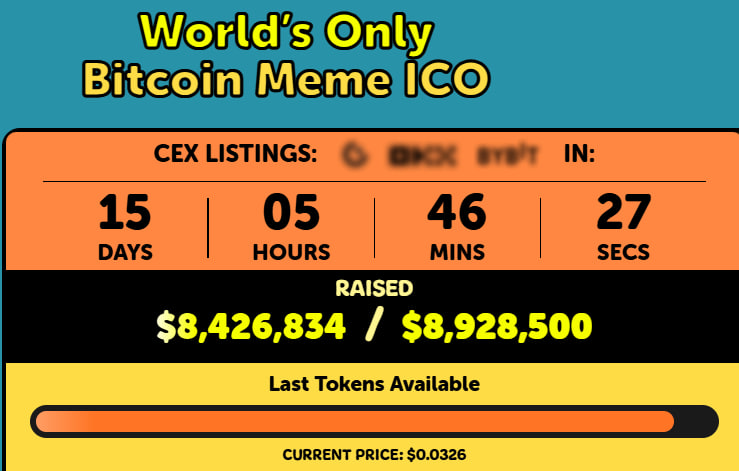 While you may need over $100K to purchase one BTC, Bitcoin Pepe is currently available at $0.0326 per token.