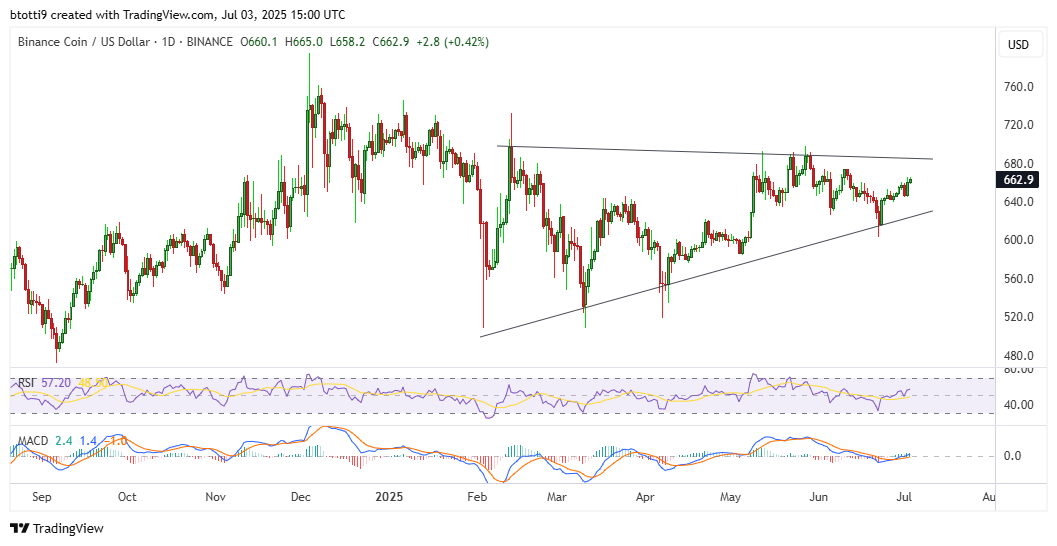 The BNB price has shown resilience, trading at approximately $663 as of July 3, 2025, with a market capitalization exceeding $93.5 billion.