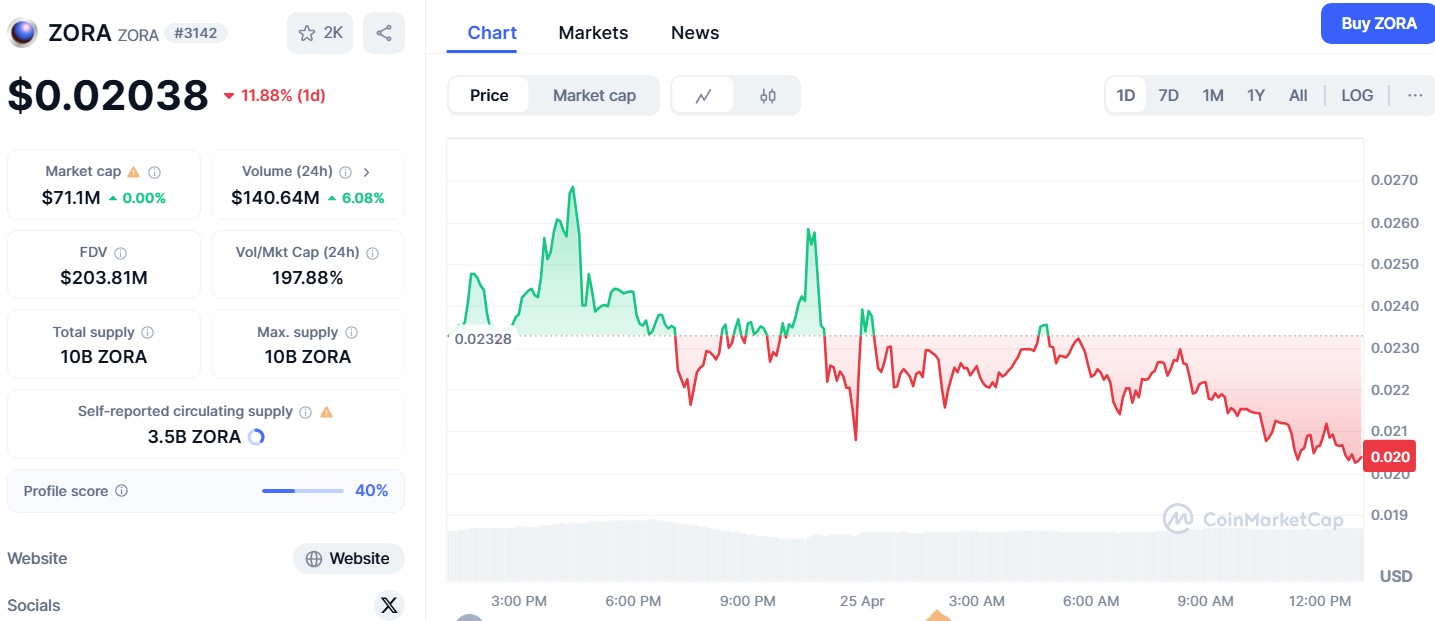 On 25 April, Coinbase confirmed ZORA had gone live for trading via its website and mobile apps. Initially announced through X (formerly Twitter), the exchange followed up with a full listing update, confirming the token’s availability under its Experimental Label.