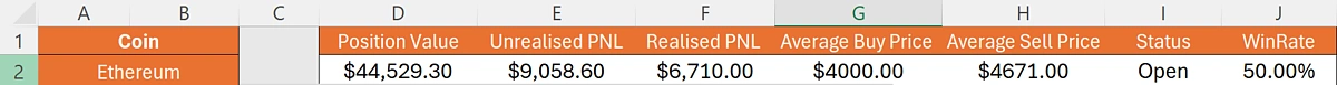 - Realised PnL: Taking the difference between the sell price and the average buy cost before the trade, then multiplying by the quantity sold.