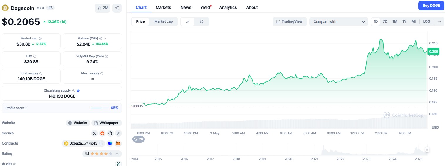 At the time of writing on Friday, DOGE was trading at approximately $0.206, having established a support base above $0.20.