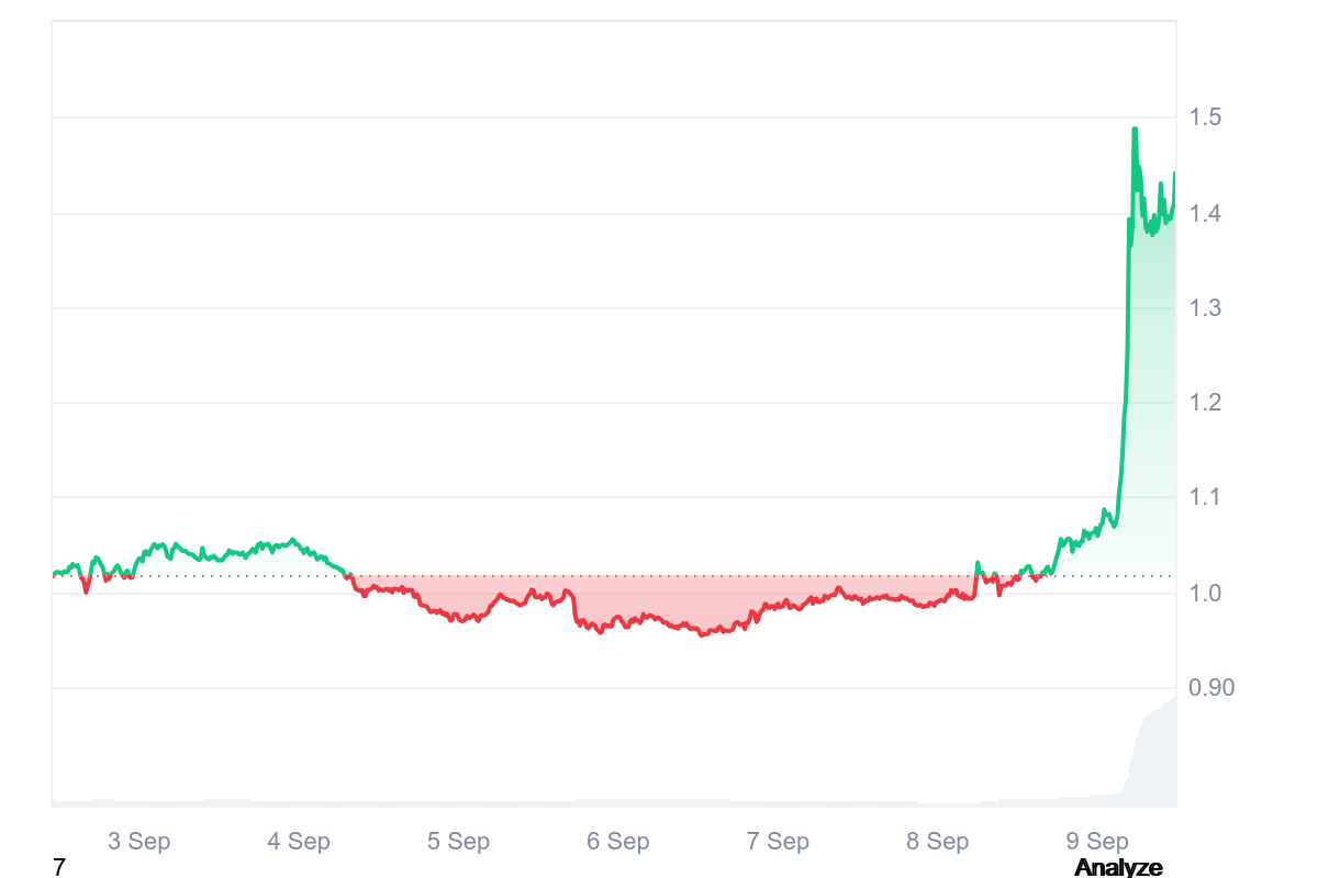 • The token jumped to above $1.52 before retreating slightly to around $1.39.