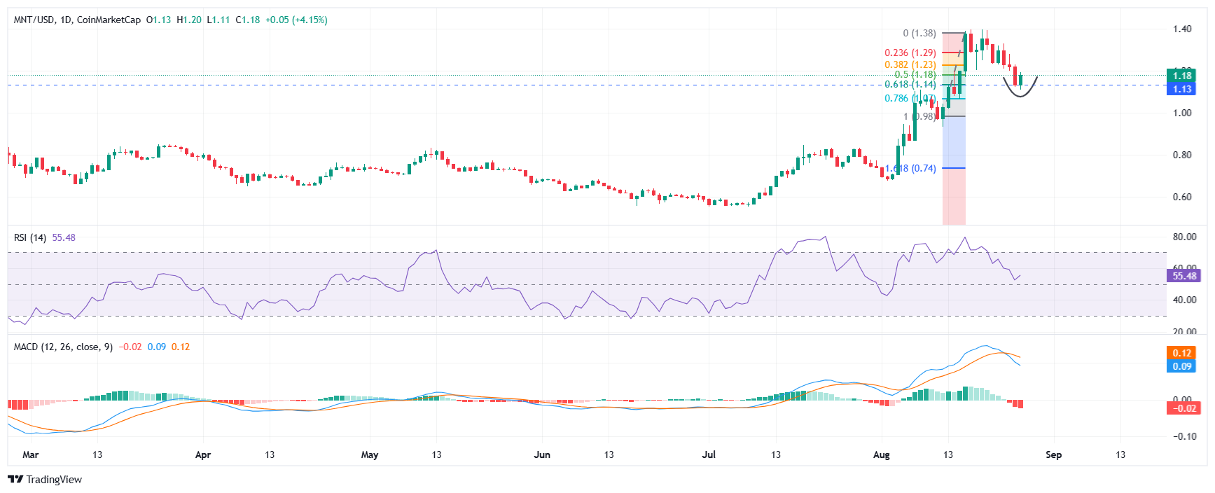 Technically, Mantle has bounced from the 61.8% Fibonacci retracement around $1.14 after a 19% weekly decline.