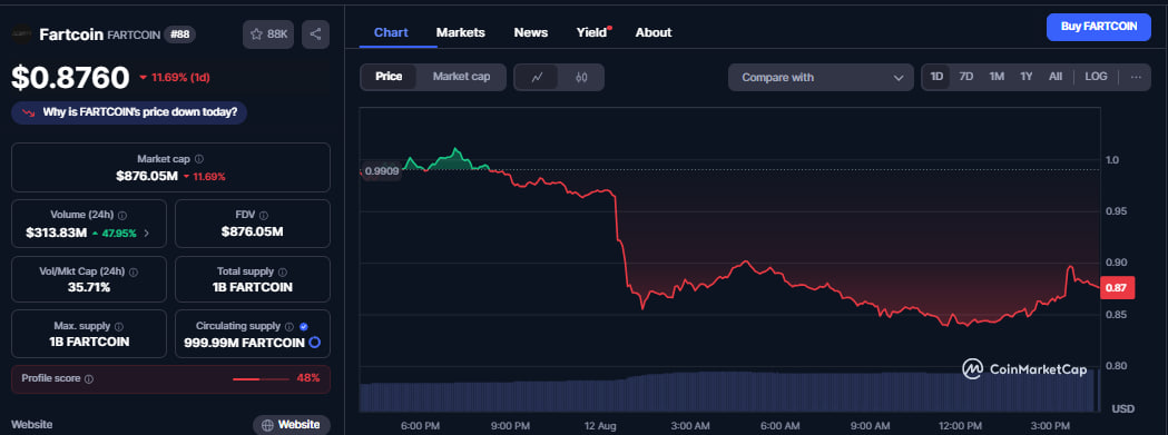 Fartcoin struggled with bearish tendencies after losing the $1 mark during the weekend.