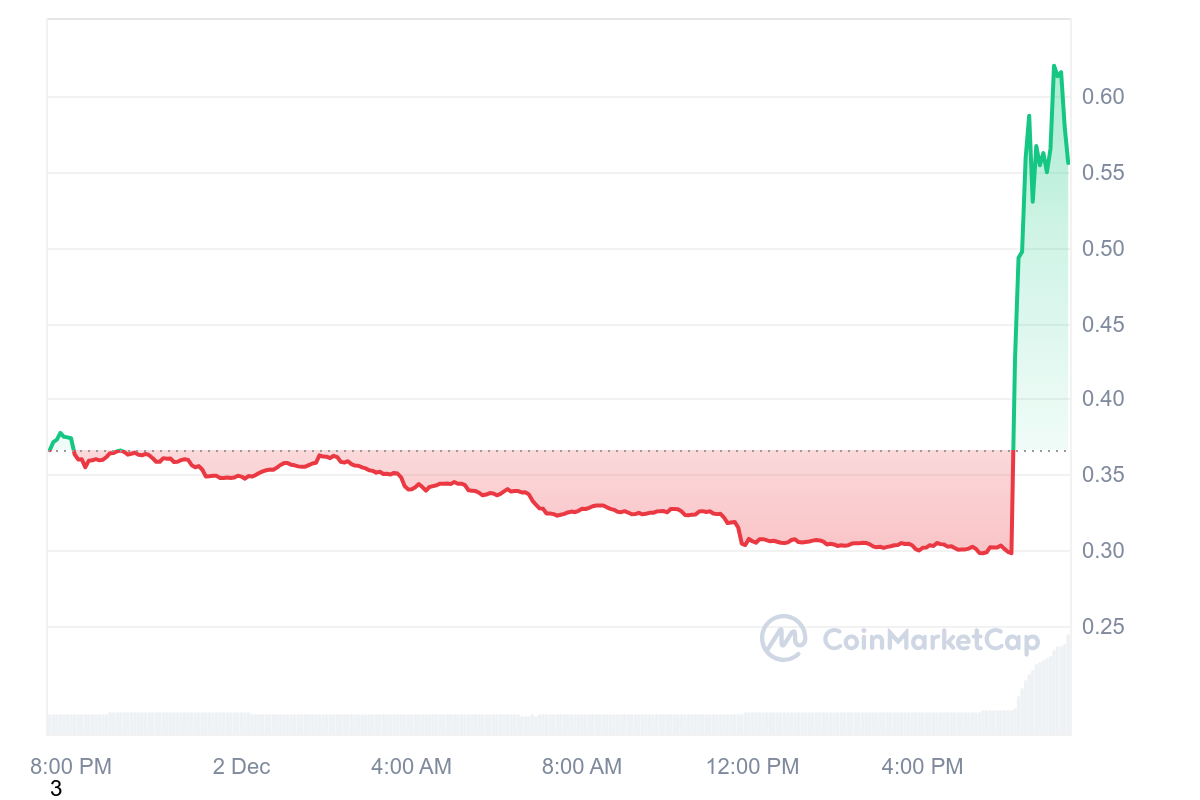 On Monday, Dec. 2, cypto exchange Coinbase announced that it had added Moo Deng (MOODENG) on on its listing roadmap. The price of MOODENG jumped a massive 66% as the community reacted to the listing news.
