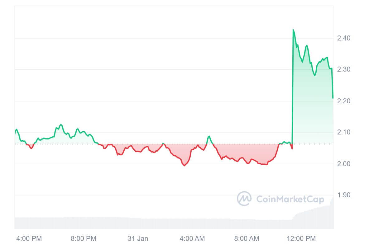 VIRTUAL, the native token of the AI agents platform Virtuals Protocol, has surged to highs of $2.45 and recorded a 24-hour trading volume of over $485 million.