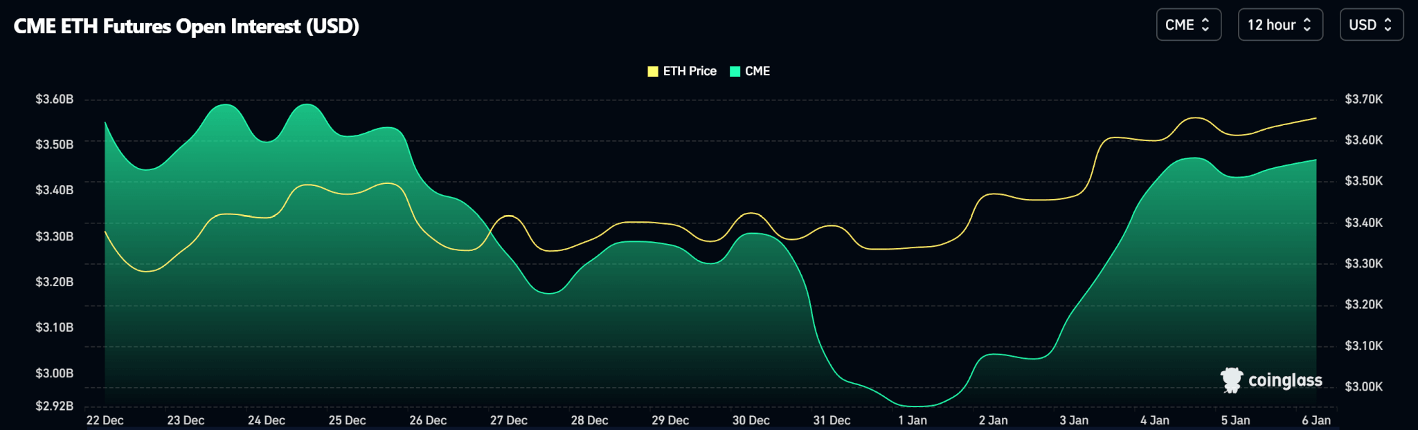 Similar to Bitcoin’s open interest charts, Ethereum OI reached a weekly low on Jan. 1 and has been rising since as new longs enter the derivatives market.
