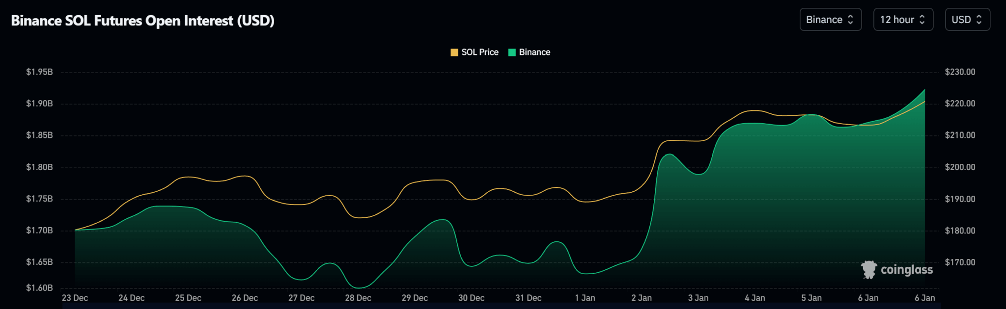 Open interest in Solana followed a similar pattern as that of Bitcoin and Ethereum, picking up from Jan. 1.