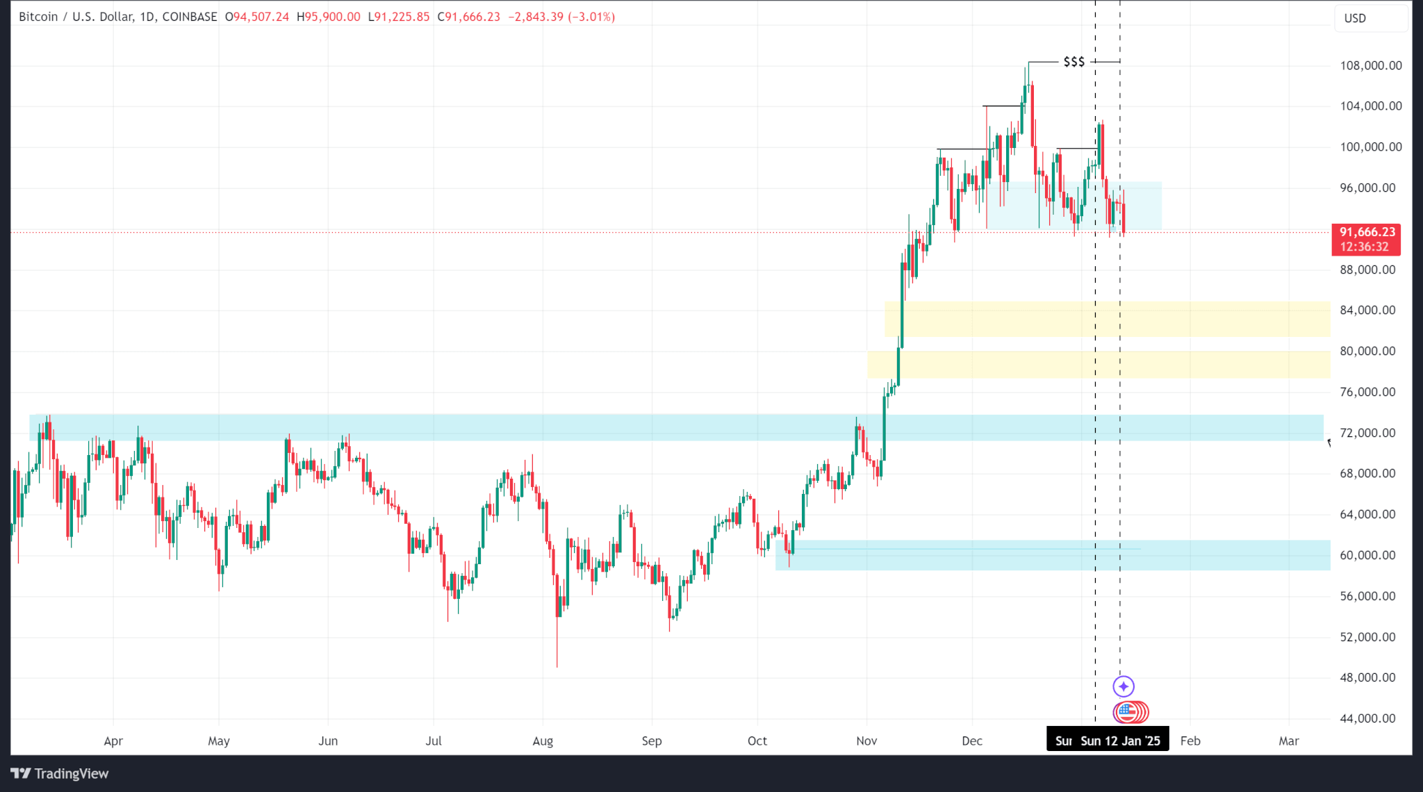 Bitcoin’s price logged a negative week falling from a high of $102,733 to a low of $91,188 before eventually closing at $94,547.