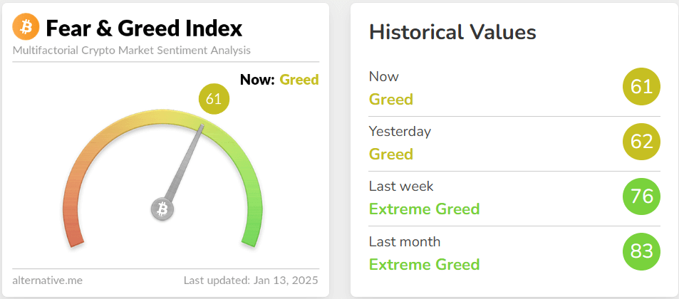 Open interest data shows a steep fall from $1.89Bn on Binance on Jan. 7 to $1.58Bn on Jan. 10. As of this publication, OI levels have improved to $1.63Bn.