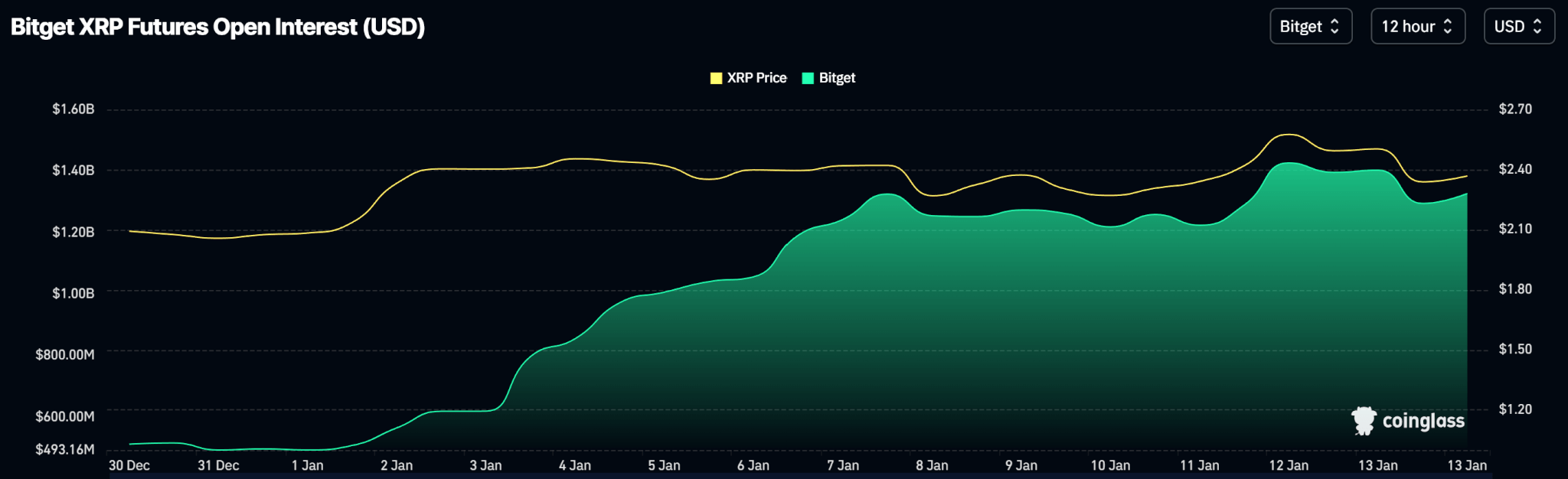 Open interest rose on Bitget, the exchange with the highest XRP derivative trading volume, over the last week, supporting upward price movement as positive news around Ripple’s case with the SEC boosted sentiments.