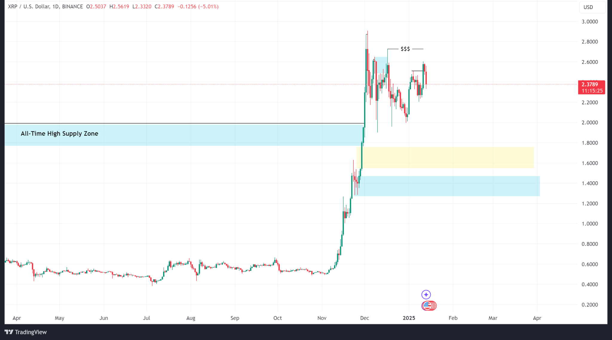 However, technical analysis shows that XRP trades at a premium and a pullback is expected. The most likely levels are the fair value gap at $1.75 and the order block at $1.46.