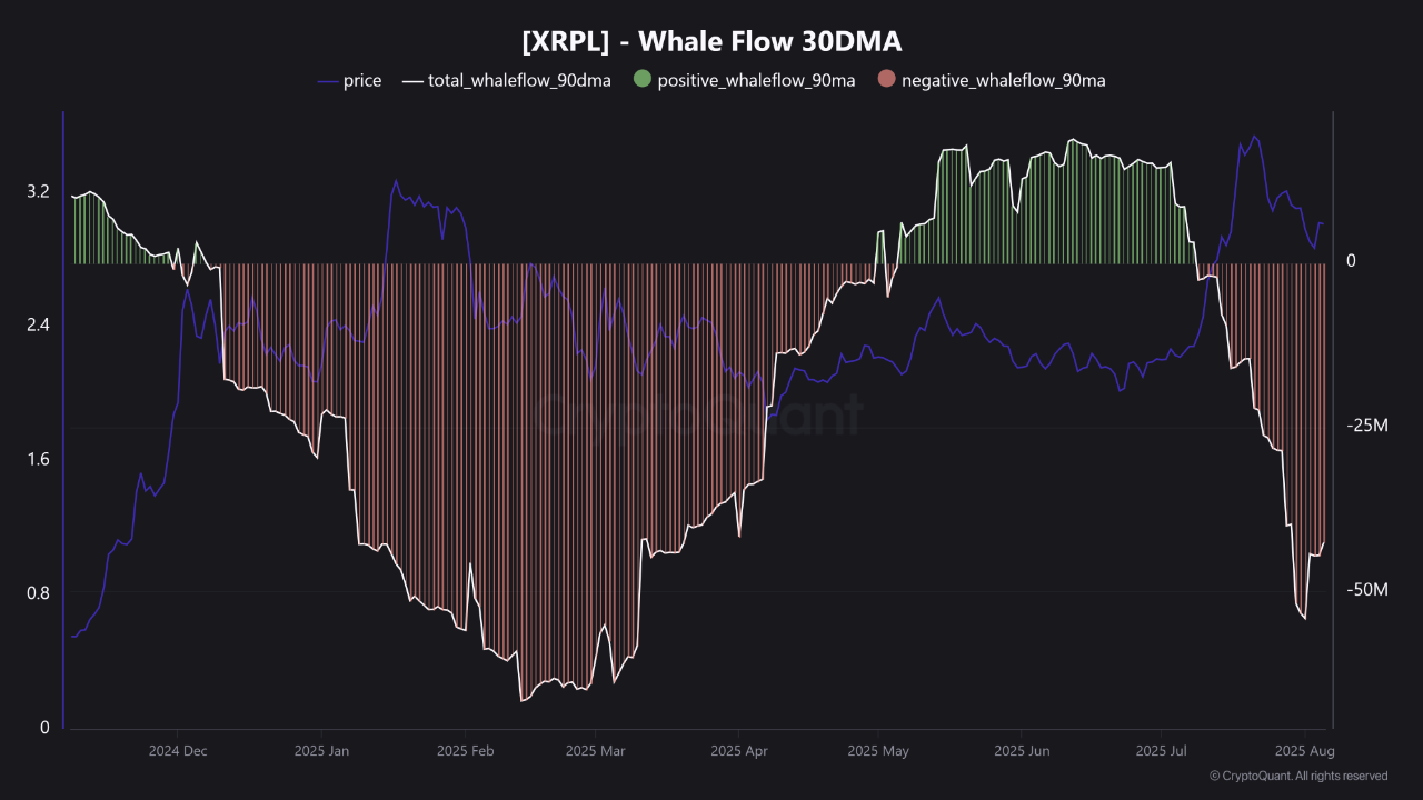However, without renewed accumulation from whales — at least 5 million XRP per day, according to analysts — the market may continue to struggle.