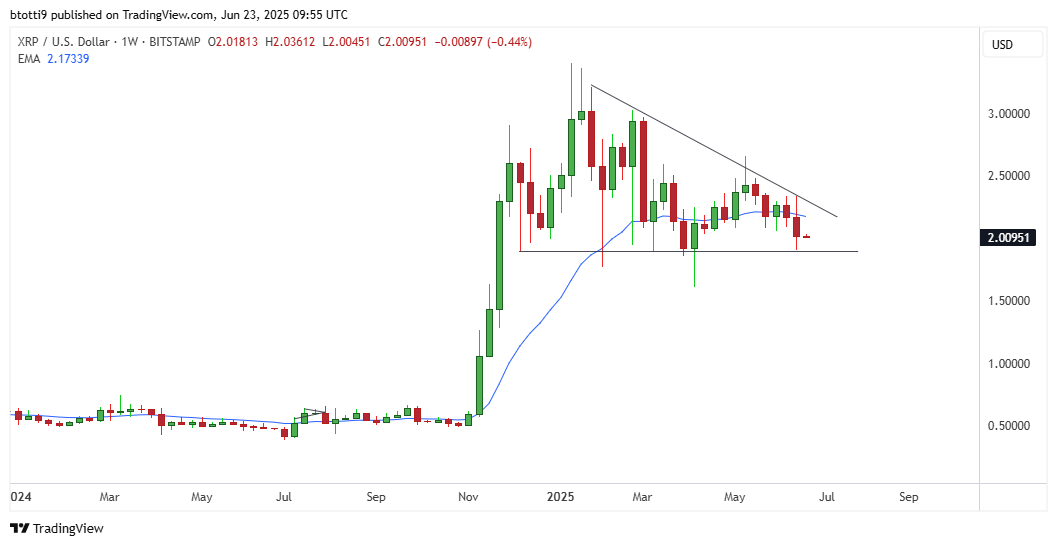 The bounce to $2.00 suggests that bulls are defending this key level, positioning XRP for a possible short-term rally.